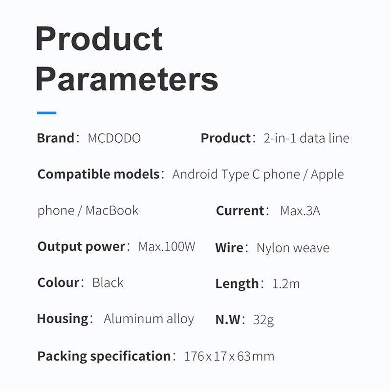 Mcdodo USB C Cable TO Type-C +iPhone lightning Cable 2 in 1 PD 60W For iphone 11 12 13 pro max iPhone X 8 Plus XR XS MAX Fast Charging Cable For Samsung huawei Mate 20 Pro P30 Pro Xiaomi Charger D