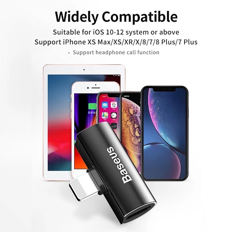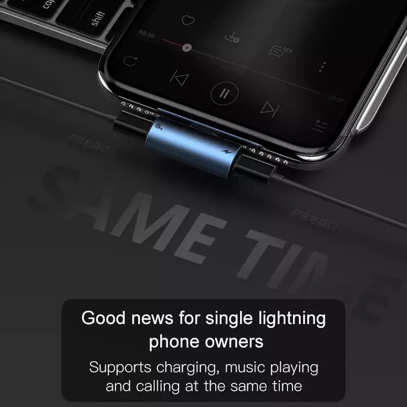 Baseus L46 iPhone Lightning Male to Dual iPone Lightning Female Adapter 8 Pin 2-in-1 Charger Headphone Adapter Audio Splitter