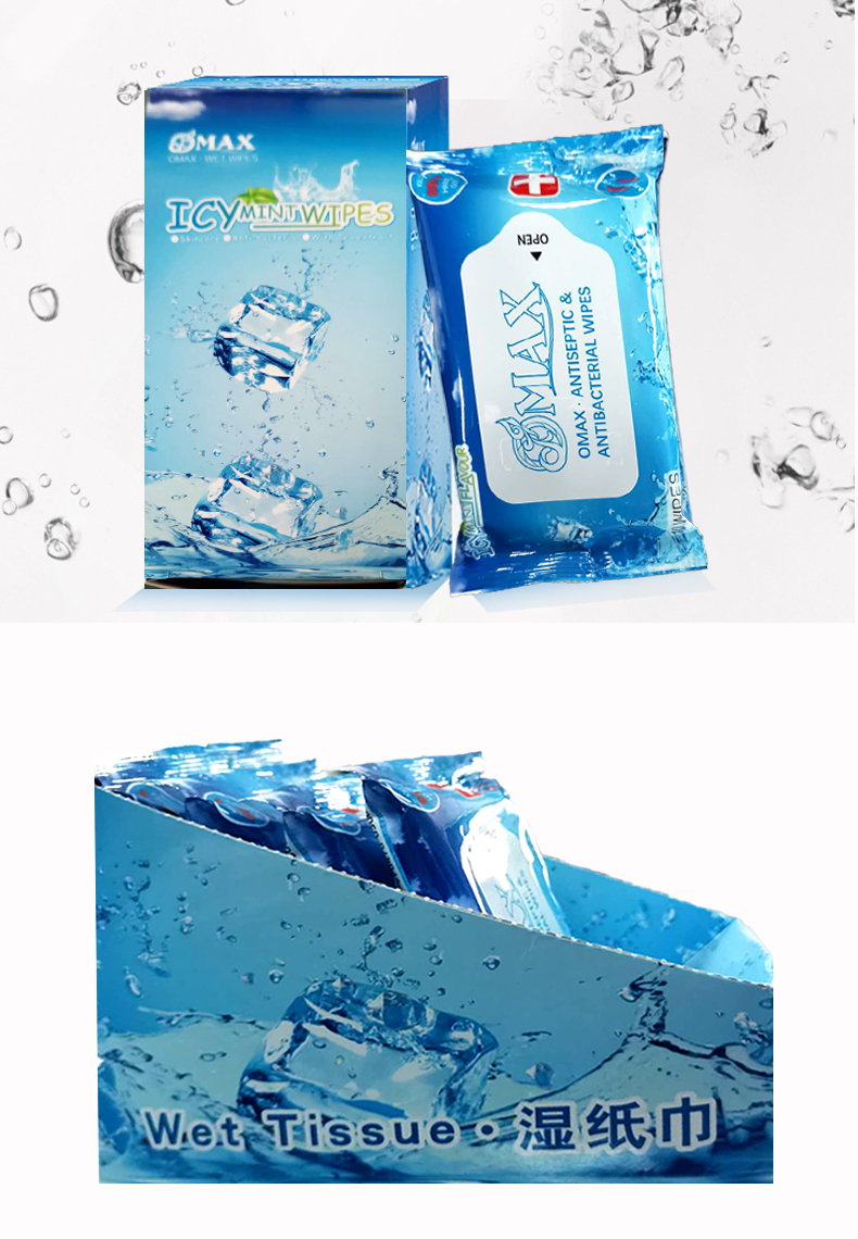 OMAX SG / FAMILY TRAVEL ANTIBACTERIAL ICY MINT / TOTAL 24 PACKS OF WET WIPES