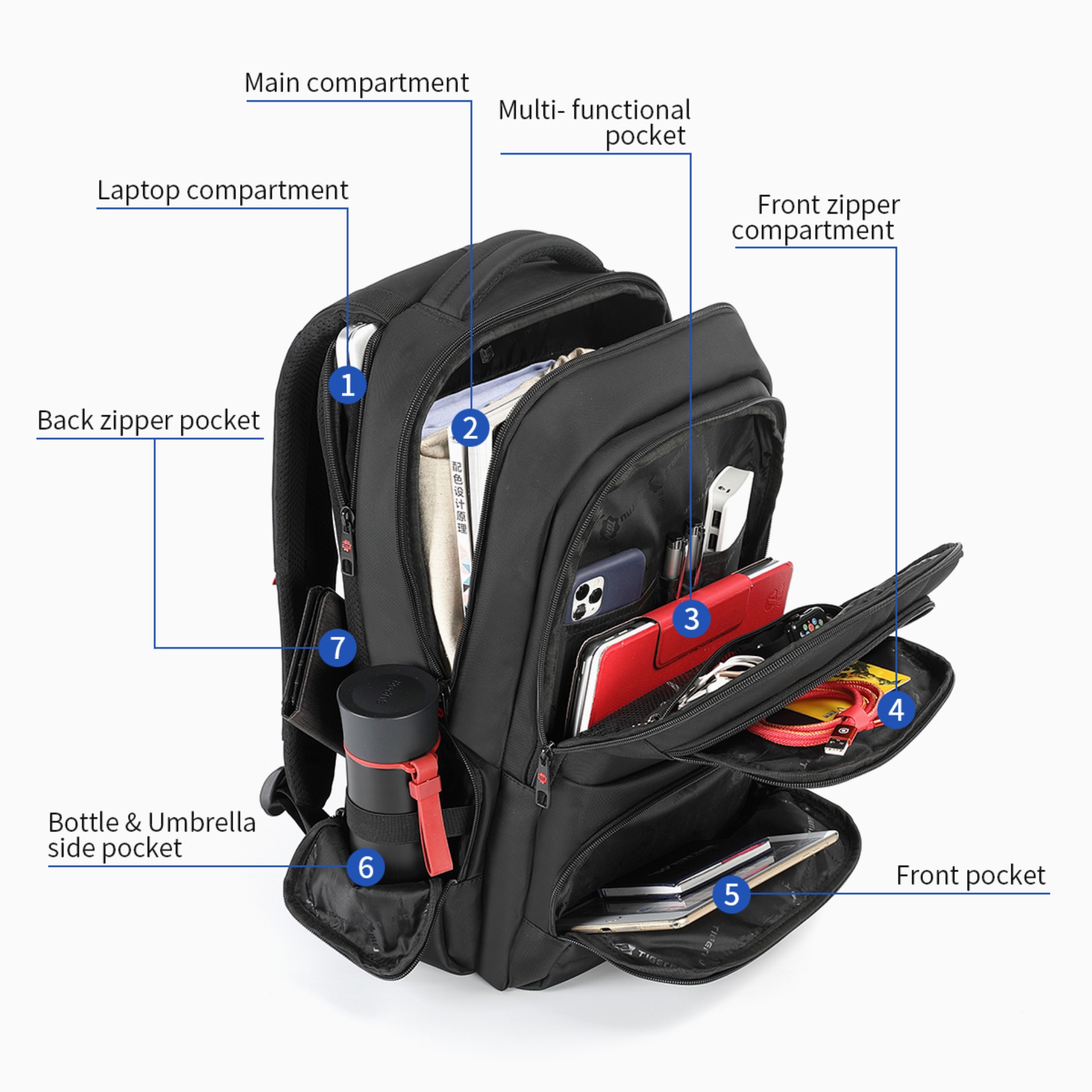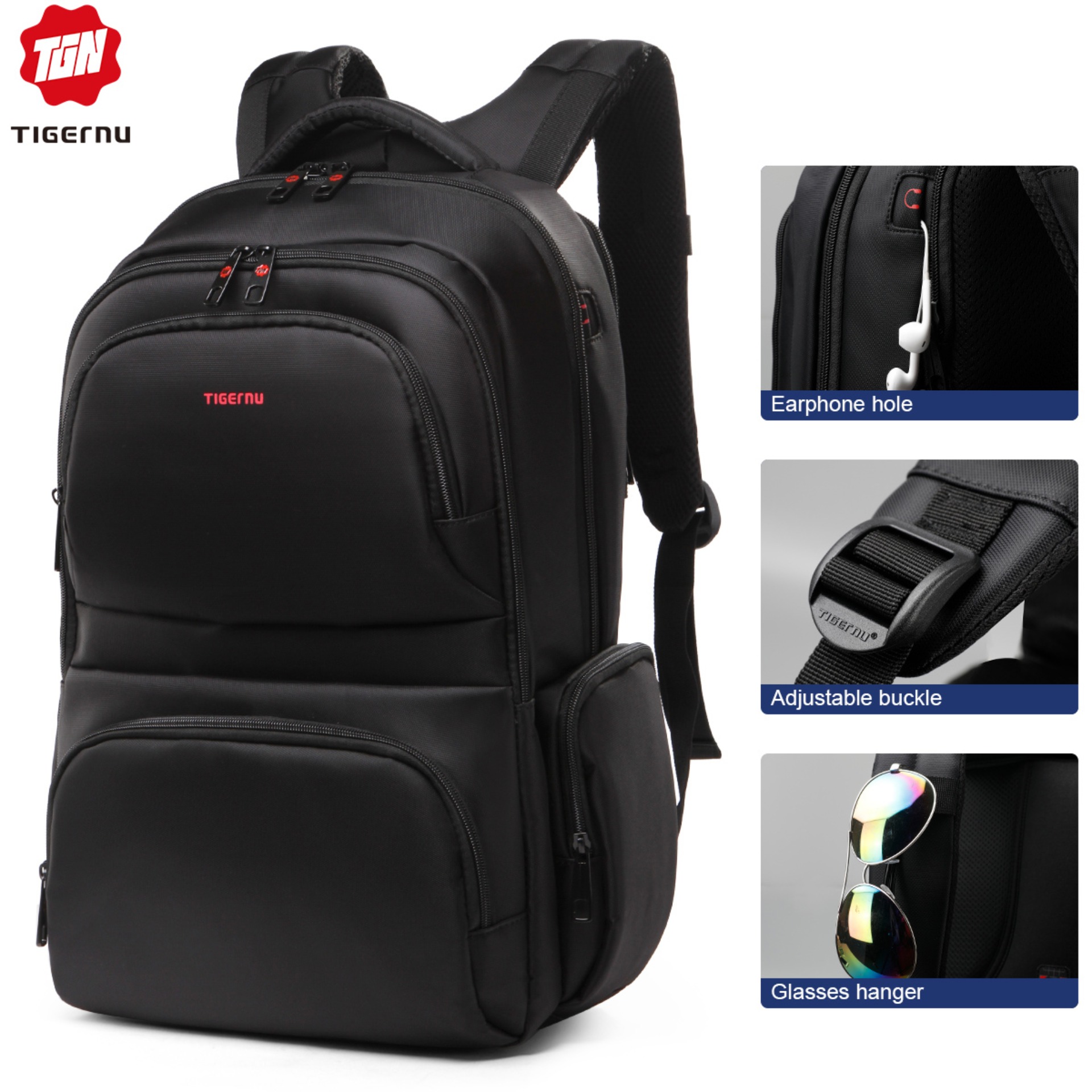 【SHIP FROM MALAYSIA】Tigernu Waterproof Nylon Multi-functional Travel Business Casual Backpack for 12.1-15.6 Laptop T-B3140(black)