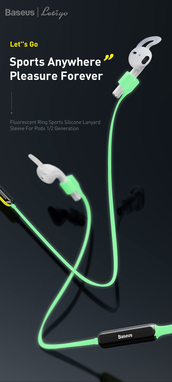 Baseus Let''s go Fluorescent Ring Sports Silicone Lanyard Sleeve For Pods 1/2 Generation