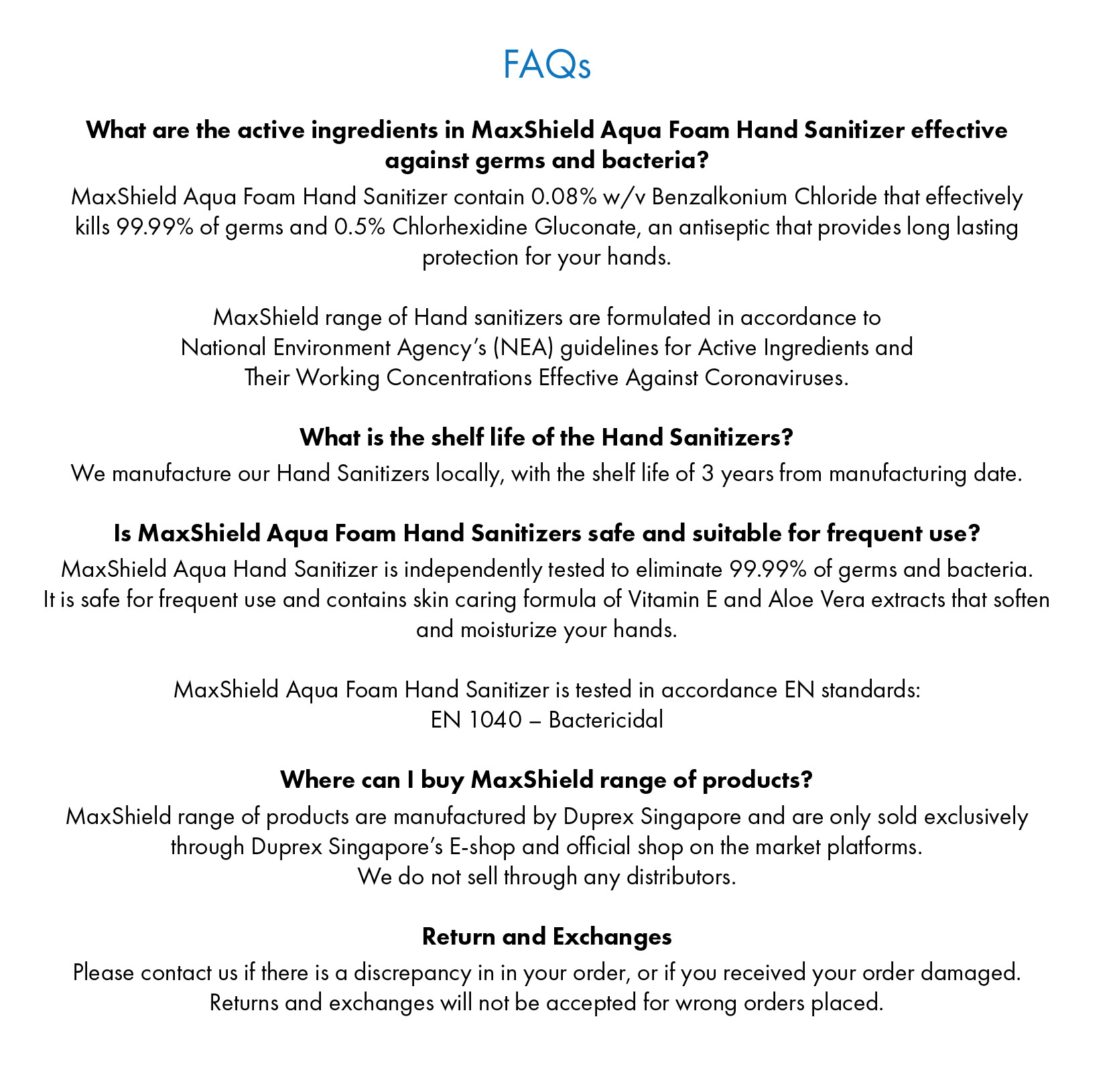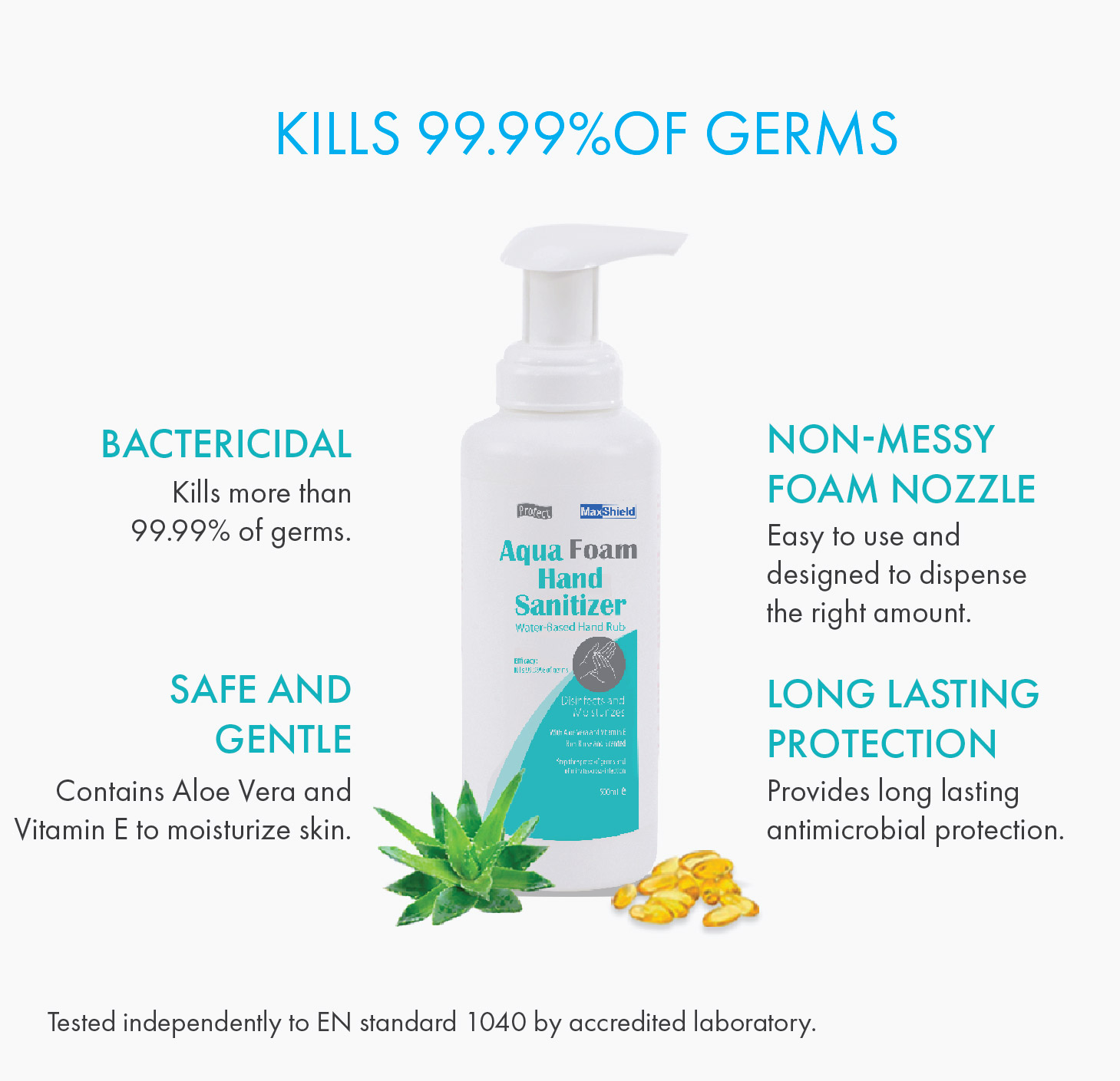 Maxshield Aqua Foam Hand Sanitizer Alcohol Free (2 x 500ml) / Suitable for sensitive skin / Kills 99.99% of germs / Made in Singapore